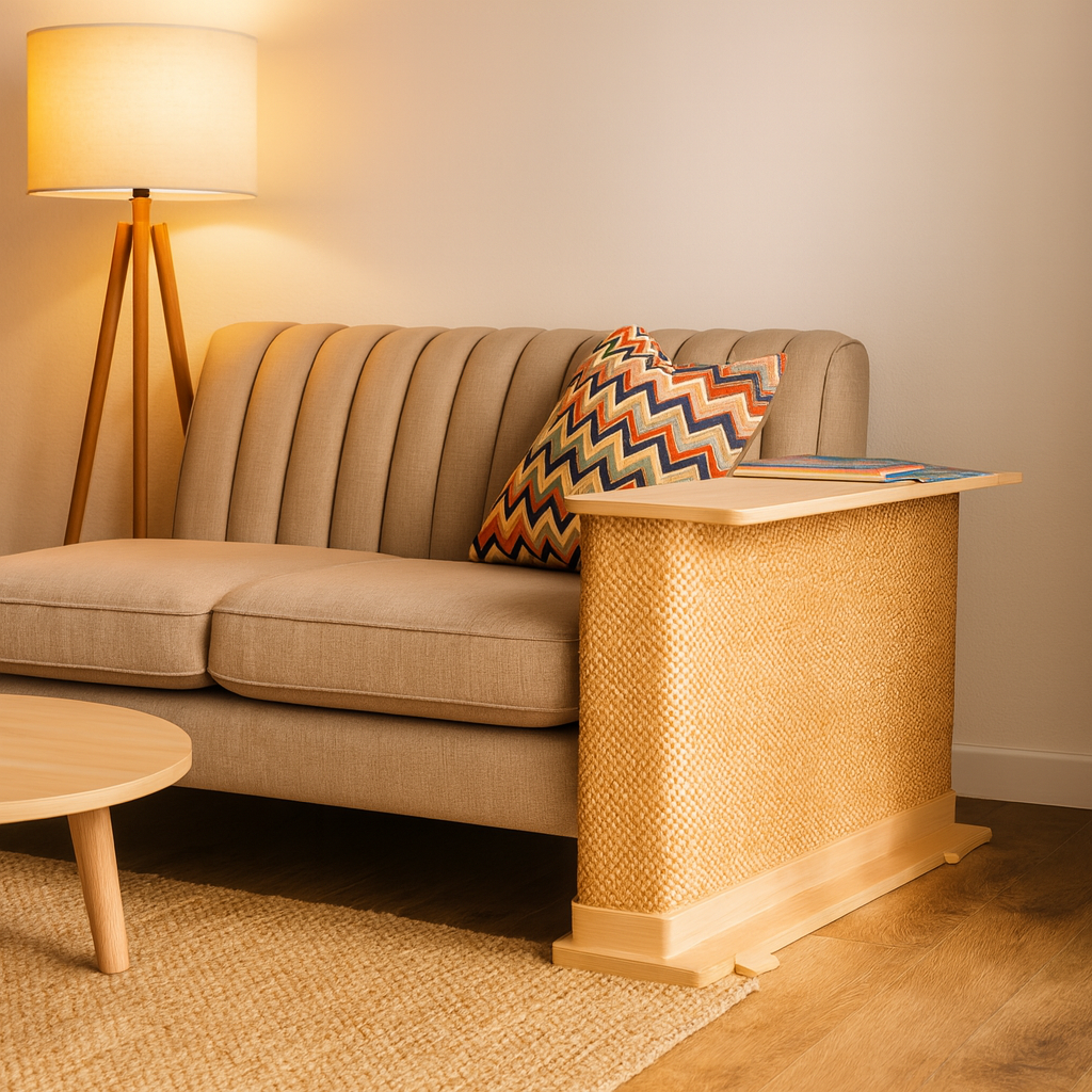 The PetHaven ✨ Elegantly solve a cat lover’s conundrum with our patent-pending side table that simultaneously protects your sofa from scratches and entertains your cat.
