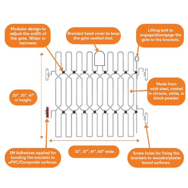 Select your preferred width and height and the dog safety gate will offer a tidy and secure solution to keeping you, your dog, and others safe when at the front door.