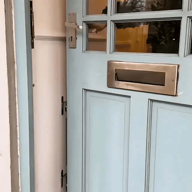 We’re renters and I was nervous about wall damage—no issues at all. The pads hold tight, and our 70 lb shepherd mix can’t push past it. Chic and sturdy.